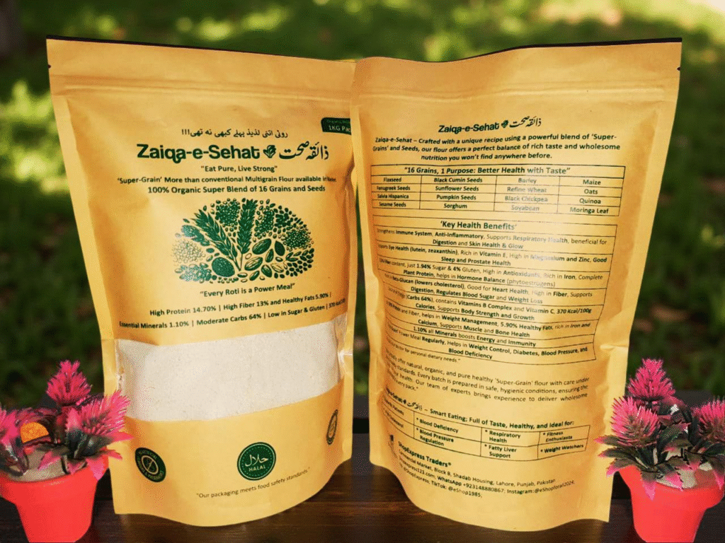 Switching to “Zaiqa-e-Sehat  ذائقہ صحت” Multigrain Flour is an easy way to boost your meals with essential vitamins and minerals. It’s versatile, nutritious, and perfect for anyone looking to regulate Diabetes, High Blood Pressure, High Cholesterol, Respiratory Health, Fatty Liver, Blood Deficiency, Fitness Enthusiasts and Wight Watchers. “Zaiqa-e-Sehat  ذائقہ صحت” is a healthier choice without sacrificing flavor. Try it today and taste the difference!